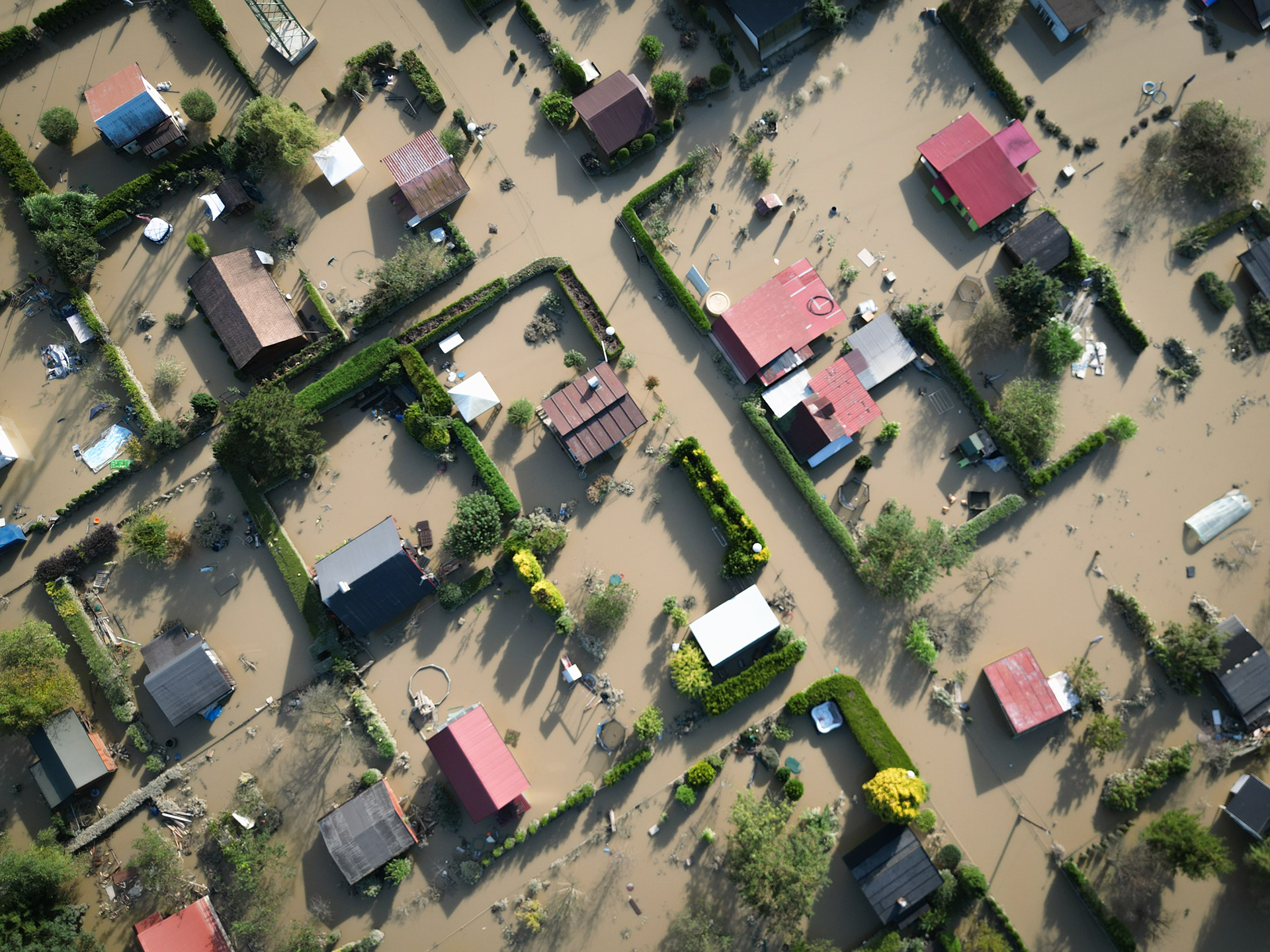 17th September 2024 - Houses in Czechowice-Dziedzice, Poland, submerged in water following catastrophic floods that swept through southern regions of the country, causing massive destruction and forcing thousands to leave their homes.